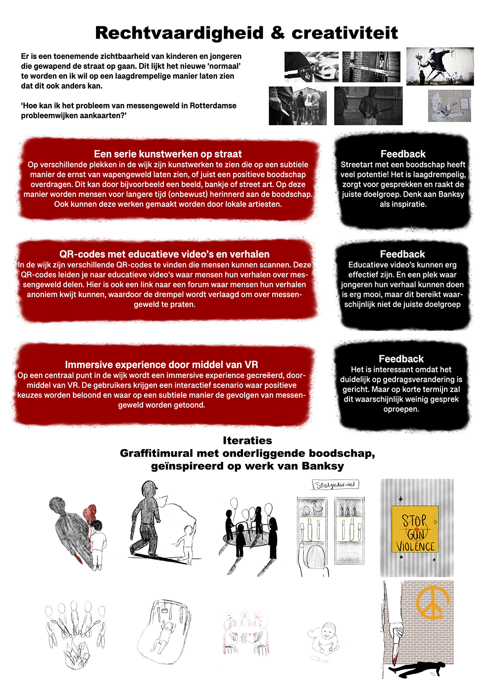 As a target audience, I chose problem areas in Rotterdam where there is a lot of gun and knife violence. I wanted to raise awareness among young people and others in these neighbourhoods in a low-threshold way about the impact of weapons. Because I wanted to do this in a low-threshold way, I decided to use a medium that is often already present in these neighbourhoods: graffiti. By placing a mural in this neighbourhood that subtly draws attention to gun and knife violence, I want to create awareness among the residents and hopefully initiate a change.