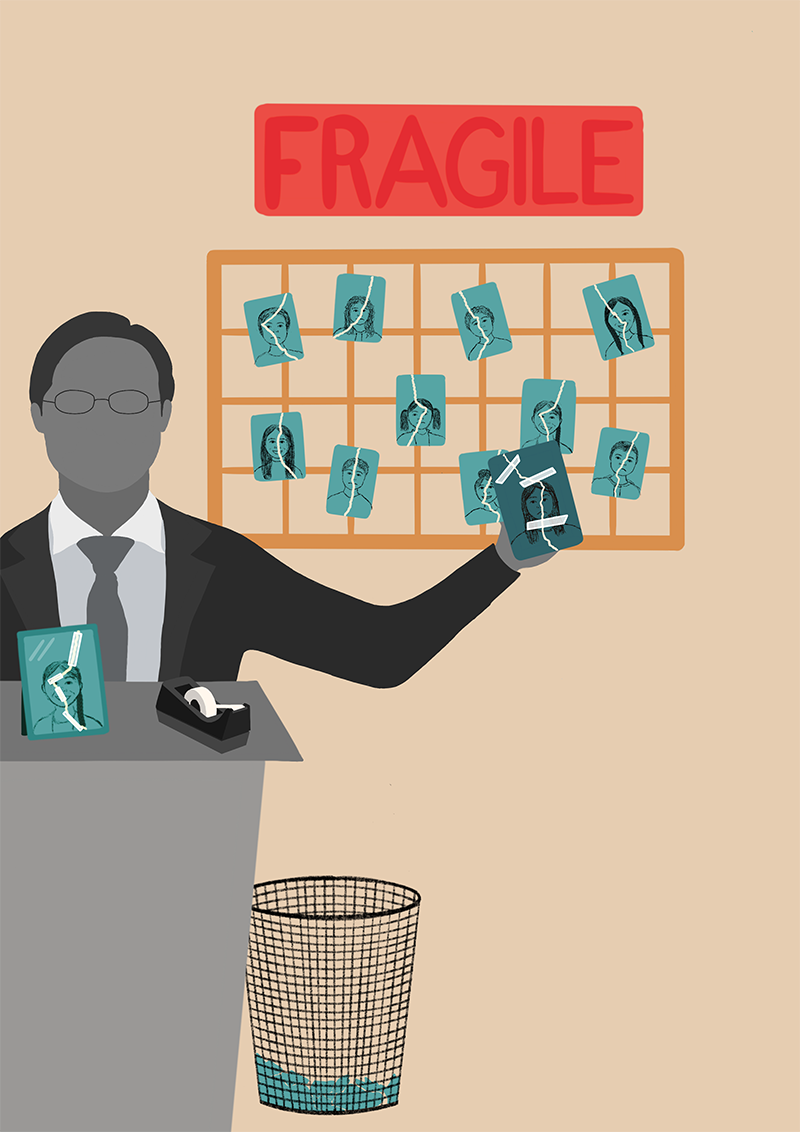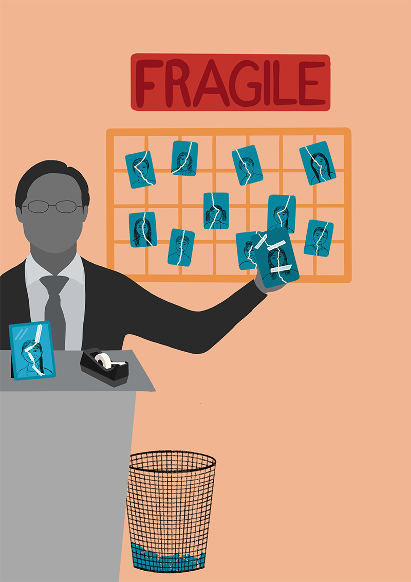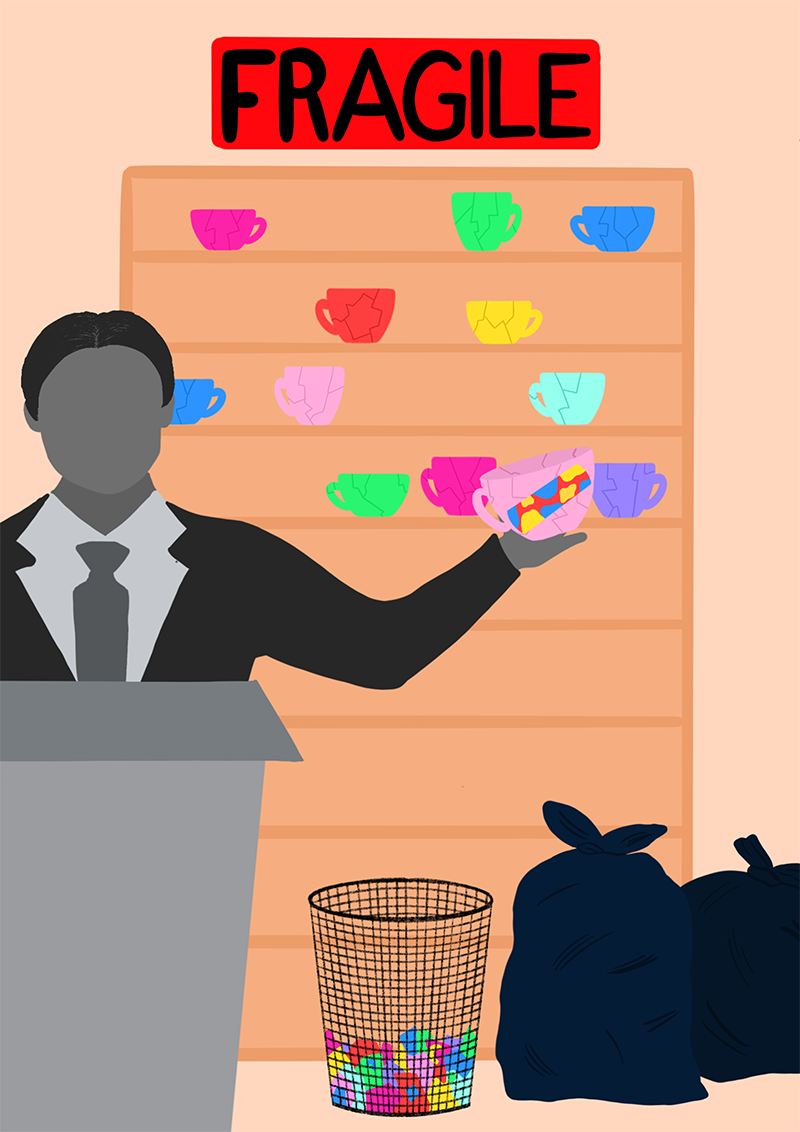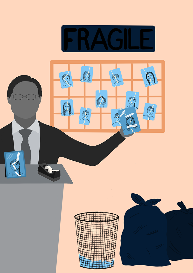 With this illustration, I aim to communicate the message that there is insufficient attention and care given to youth welfare. There is a tendency to overlook these issues, and I wanted to represent this in a creative manner. In the image, you see a man resembling our former prime minister, symbolizing the government. Surrounding him are various torn pictures of children. The pictures on the left are carefully repaired, these children appear happy. Conversely, the pictures on the right are quickly and roughly affixed, with the children looking sad and very miserable. Through this metaphor, I intend to emphasise the need for time and attention in ‘repairing’ these damaged children in the realm of youth welfare.